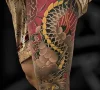 Japanese tattoo style, (commonly referred to as Irezumi, Wabori or Harimono) is a traditional style of tattooing that originated in Japan. This style is easily recognized by its characteristic motifs, bold shading, and readability.